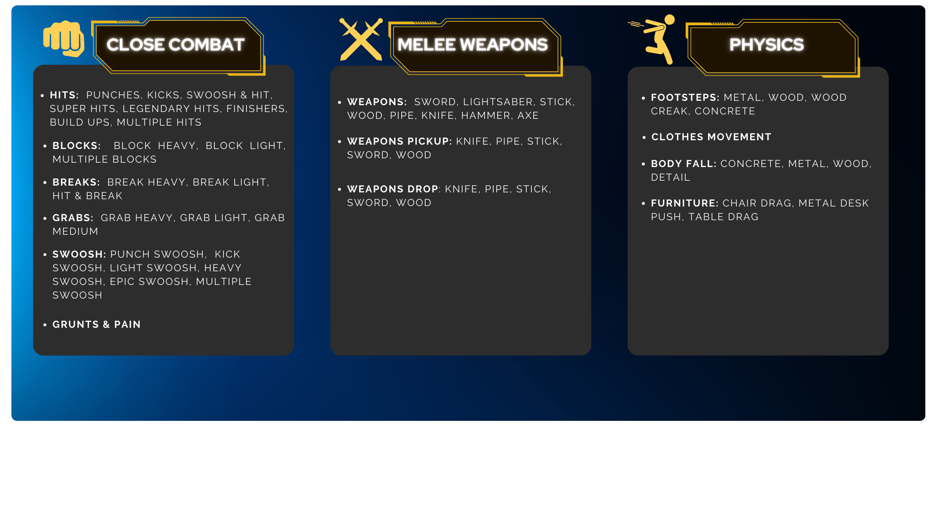 - Unparalleled Variety: From bone-crushing punches and powerful kicks to gripping grabs and swooshing swords, this pack delivers an extensive range of meticulously crafted sound effects.